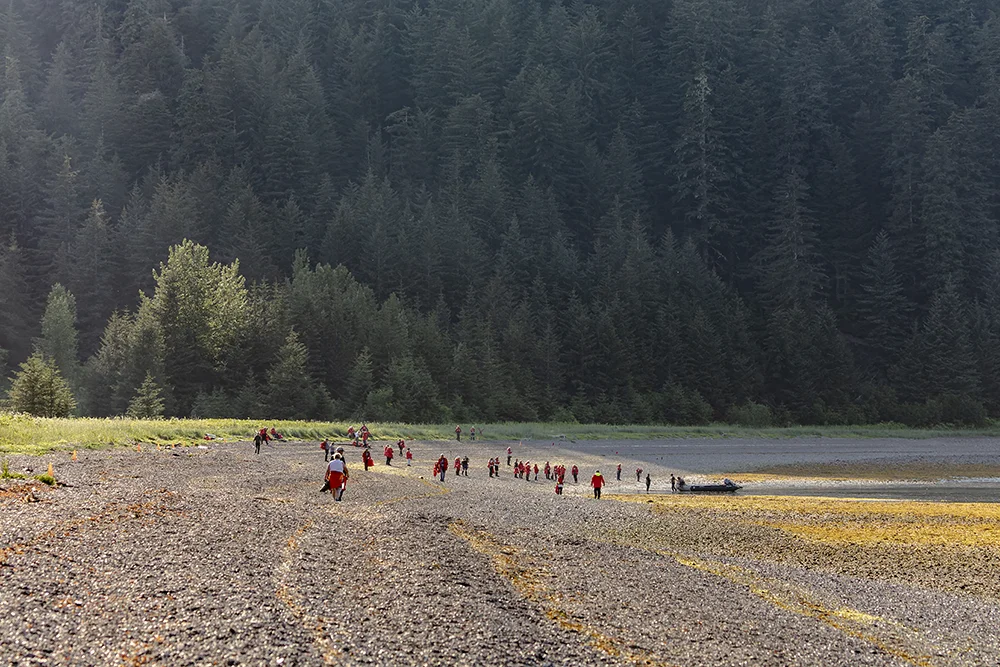 Pensión completa en el barco. Hoy navegaremos las aguas del Bosque Nacional Tongass, 8.000 km2 de árboles de hoja perenne, profundos fiordos y majestuosas cumbres nevadas. El famoso naturalista John Muir describió esta zona como una de las zonas más bonitas que jamás había visto. Si la meteorología nos lo permite, desembarcaremos con las barcas de expedición, para recorrer la zona y poder disfrutar de la panorámica de la costa de más cerca. Durante el recorrido disfrutaremos de la espectacular magnitud de sus montañas de más de 1.000 m que caen dentro del mar e intentaremos vislumbrar la fauna característica de esta zona donde podemos encontrar osos pardos y negros, alces y cabras montesas, así como leones marinos, orcas, marsopas de Dall, nutrias de río y marinas que habitan sus aguas.