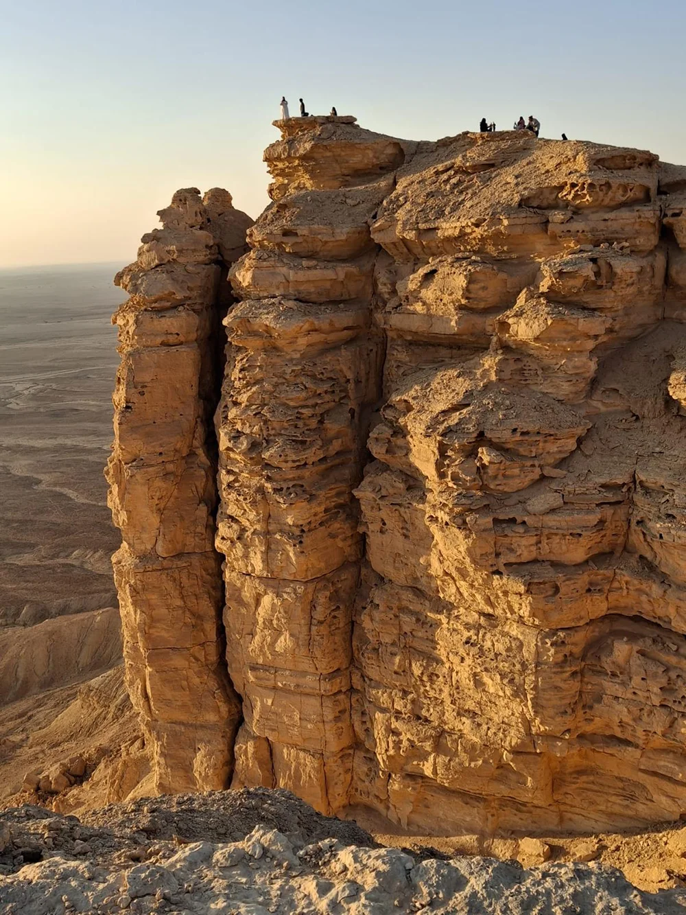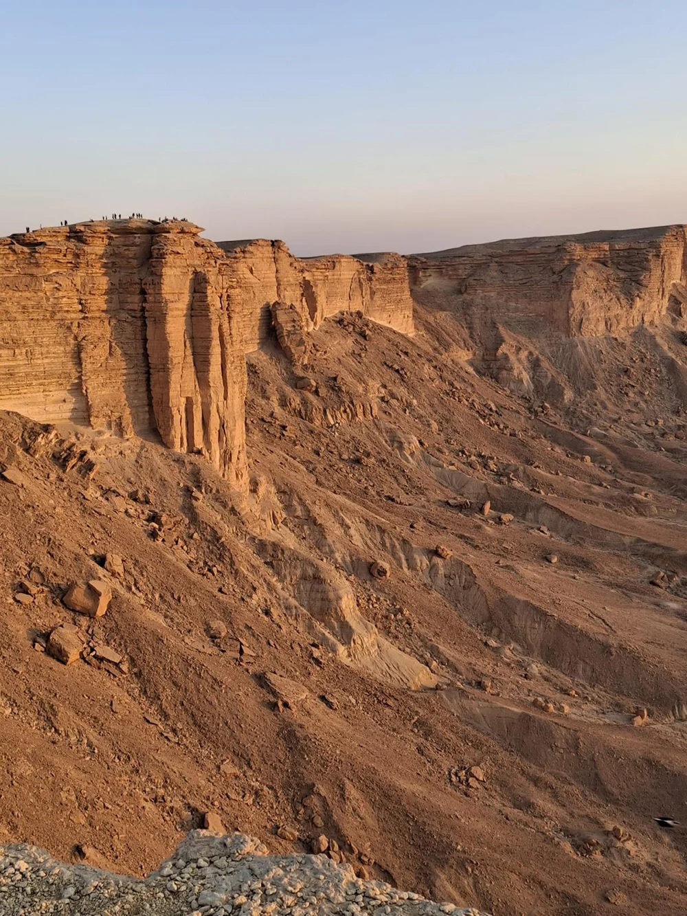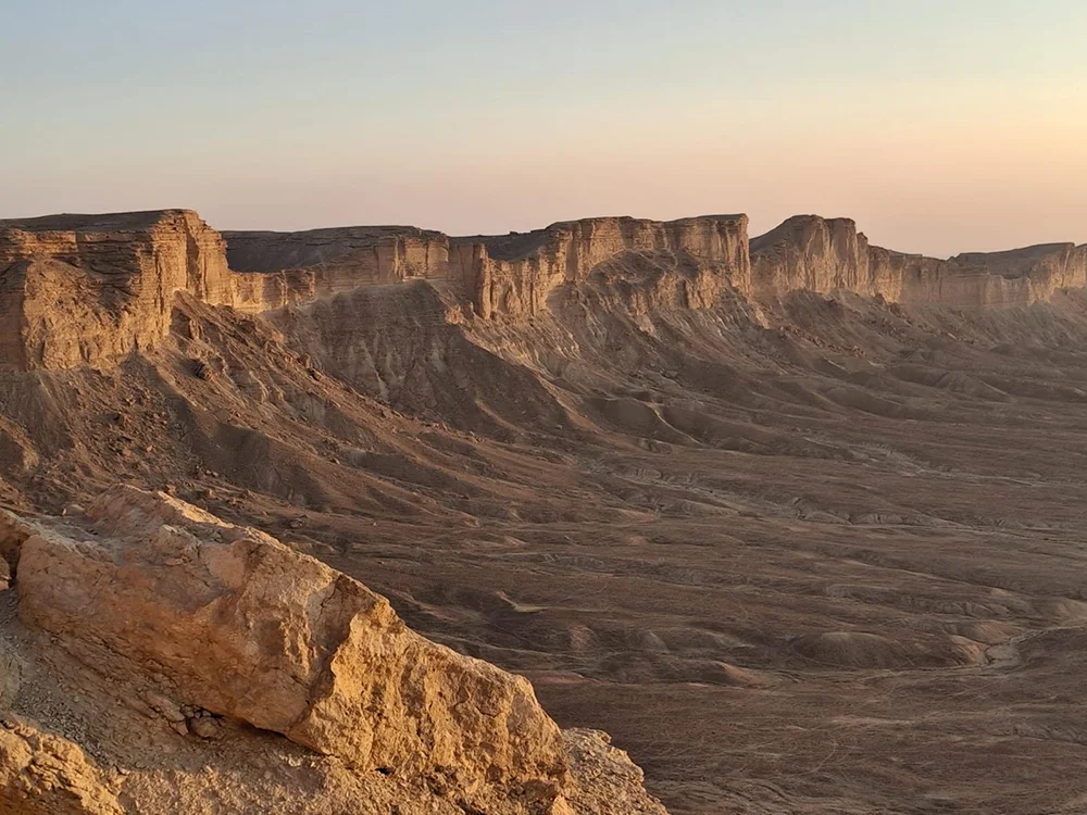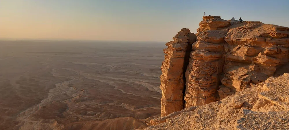 Después de desayunar en el hotel nos trasladaremos al aeropuerto de Abha para coger el vuelo a Riad, la capital de Arabia Saudí. Almuerzo tipo picnic. Después de aterrizar iremos a conocer los vertiginosos acantilados de Tuwaiq, conocidos localmente como el Margen del Mundo. Disfrutaremos de las espectaculares vistas saboreando una taza de té y luego regresaremos a Riad para cenar y alojarnos en nuestro hotel.