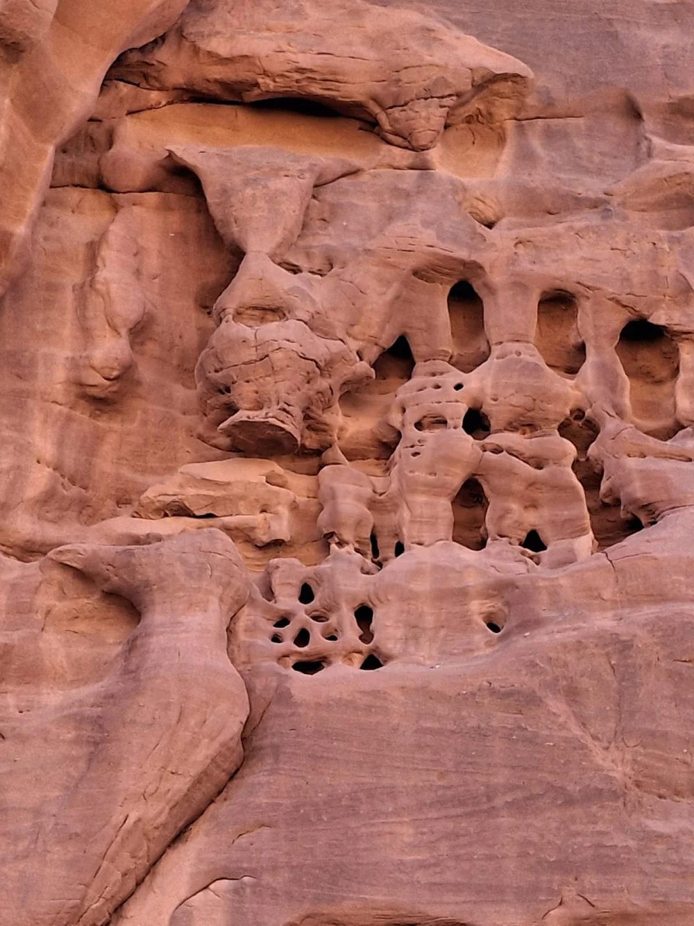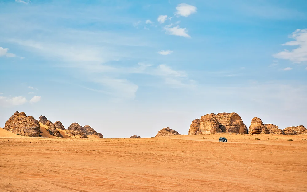 Desayuno en el hotel. Hoy descubriremos en vehículos 4×4 algunos de los paisajes más impresionantes de Arabia Saudí. Empezaremos la mañana en Hisma, un entorno desértico de belleza excepcional lleno de acantilados de roca roja que recuerda los famosos paisajes de Wadi Rum, en Jordania. La zona también goza de un interés arqueológico especial, tal y como atestiguan la multitud de grabados e inscripciones rupestres que encontramos en toda la región. Almuerzo tipo picnic. Por la tarde nos acercaremos a Jebel Al Lawz, que con 2.580m de altitud es una de las montañas más altas del país. Según la tradición local, esta montaña es el verdadero monte Sinaí, donde Moisés recibió las tablas de la ley. Veremos algunos lugares que recuerdan la vida del personaje bíblico y luego regresaremos a Tabuk para cenar en un restaurante local antes de dirigirnos al hotel para descansar, después de disfrutar de un día de impresionantes paisajes.