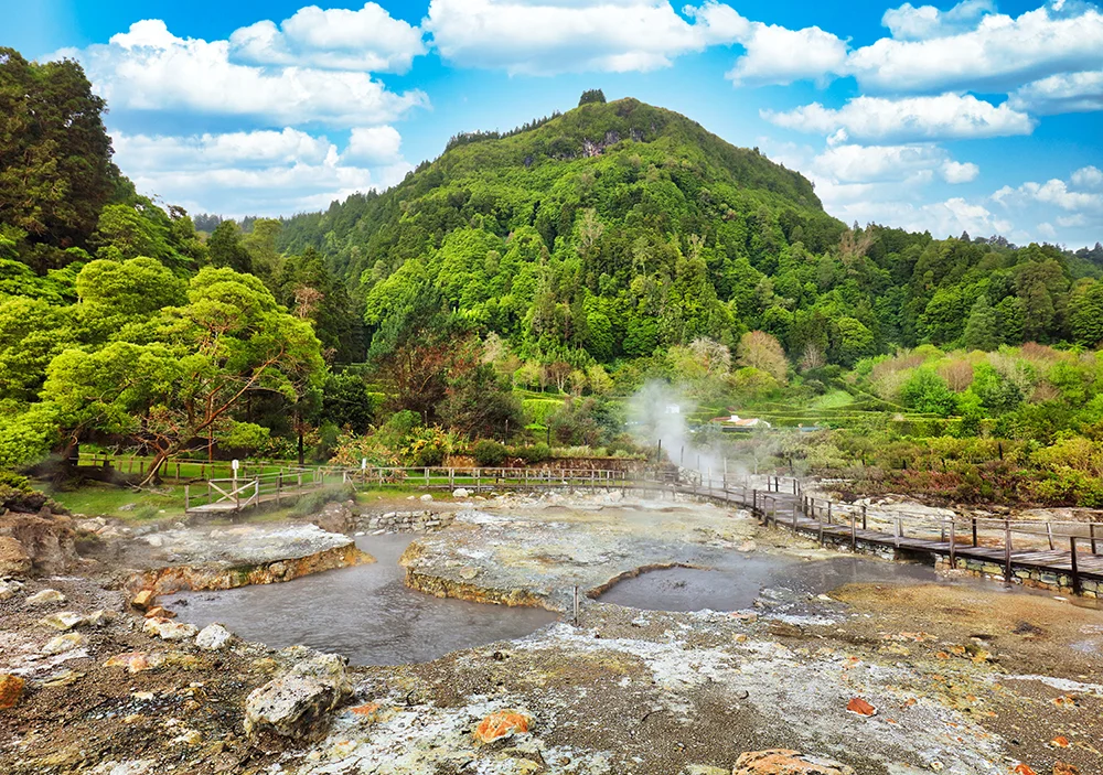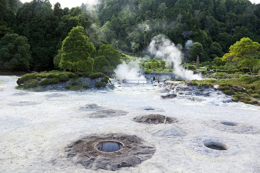 Desayuno en el hotel. Esta mañana visitaremos el jardín botánico de Terra Nostra, uno de los más bonitos e interesantes de la isla, con más de 2.000 árboles de especies diferentes provenientes de todo el mundo. A continuación nos dirigiremos hasta la zona de Furnas. El nombre de furnas (cueva) evoca las cavidades de donde brotan fuentes y géiseres de barros sulfurosos. Cuando lleguemos a la orilla noroeste del inmenso lago Furnas, a los pies de las pendientes verticales, las nubes de vapor nos indicarán la presencia de las caldeiras, que llegan a alcanzar temperaturas próximas a los 100ºC . En esta zona todavía se aprovecha el calor geotérmico para cocinar platos tradicionales, entre ellos el tradicional cozido, que será el plato que degustaremos hoy para almorzar. Continuaremos la etapa visitando una típica plantación local de té y terminaremos de nuevo en Punta Delgada, donde todavía nos quedará tiempo para hacer libremente un último paseo por la población o bien las últimas compras. Esta noche saldremos a cenar a un buen restaurante local.