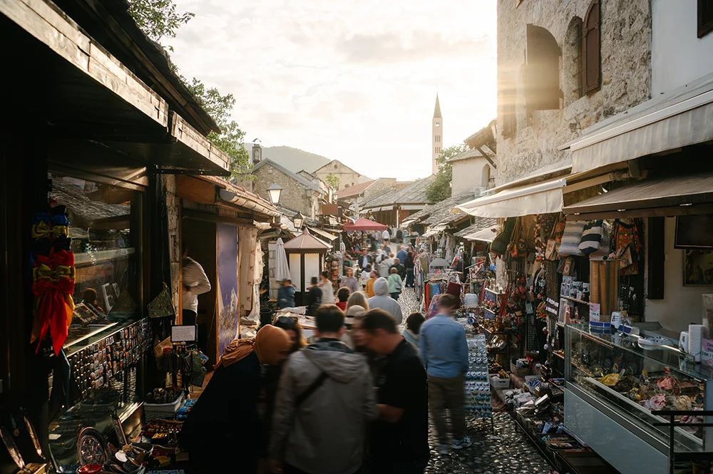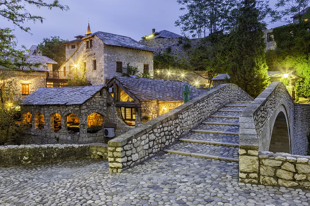Desayuno en el hotel. Mostar es una joya de los Balcanes donde historia y arquitectura se encuentran en cada rincón. Durante nuestro recorrido a pie veremos su gran icono, el Stari Most, un puente del siglo XVI reconstruido fielmente con piedra tras su destrucción en 1993 durante la guerra. Esta obra maestra de la ingeniería otomana, diseñada por el arquitecto Mimar Hayruddin, se eleva 24 metros sobre las aguas turquesas del río Neretva. A su alrededor recorreremos los rincones más bellos del barrio de Kujundžiluk, que aún conserva la estructura del bazar antiguo, con calles empedrados y talleres de artesanía tradicional. La arquitectura destaca por el contraste entre las casas de piedra con tejados de losa y los esbeltos minaretes de mezquitas como la de Koski Mehmed Pasha. Visitar la ciudad permite entender la resiliencia de un pueblo que ha sabido restaurar su patrimonio y su convivencia. Es, sin duda, un lugar donde cada calle explica una crónica de superación y belleza. Al acabar la visita iremos a almorzar a una conocida bodega local, donde cataremos sus preciados vinos y su deliciosa gastronomía. Por la tarde nos acercaremos hasta Blagaj, un rincón de paz espiritual donde la historia mística y la naturaleza más salvaje de Bosnia-Herzegovina se abrazan de forma única. Visitaremos la Tekija, un monasterio derviche del siglo XVI empotrado en un acantilado vertical de 200 metros. La entrada a la casa de madera y piedra permite descubrir habitaciones sagradas y balcones con vistas directas al nacimiento del río Buna, que brota con una fuerza hipnótica de una cueva profunda. La arquitectura otomana del edificio, pensada para la meditación, se fusiona perfectamente con el entorno natural y la energía del agua cristalina. Al acabar la visita regresaremos a Mostar, donde todavía nos quedará tiempo para pasear por su casco antiguo, donde cenaremos esta noche.