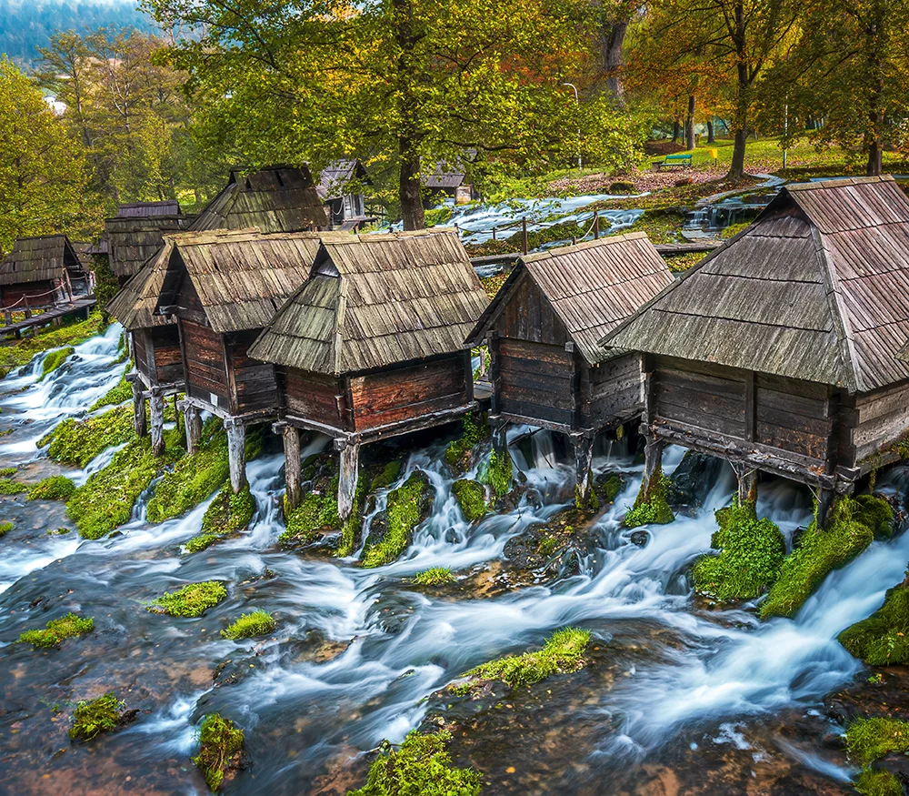 Desayuno en el hotel. Saldremos de Sarajevo hacia el noroeste del país para hacer una ruta que combina arquitectura otomana, cascadas, lagos y hospitalidad local. La primera parada la haremos en Travnik, la antigua capital de los visires otomanos, donde visitaremos su imponente fortaleza medieval, veremos la casa natal del premio Nobel de literatura Ivo Andric, visitaremos la mezquita de Sulejmanja, conocida popularmente como la mezquita pintada, y pasearemos por la orilla del río Plava Voda, antes de almorzar en uno de los restaurantes más conocidos del país por su elaboración de las famosas salsitas «ćevapčići». Continuaremos la ruta hacia la histórica ciudad de Jajce, famosa por su espectacular cascada de 22 metros de altura situada justo en el centro urbano. Exploraremos las catacumbas y nos dirigiremos hacia los idílicos molinos de agua del lago Pliva, unas pequeñas construcciones de madera sobre pilones que parecen sacadas de un cuento de hadas. Este entorno natural es perfecto para relajarse y disfrutar del reflejo de las montañas en las aguas cristalinas del lago. Retomaremos la marcha cruzando la República de Srpska, una de las divisiones dentro del país, y recorriendo paisajes verdes y frondosos llegaremos a las proximidades de Bihac, a orillas del río Una, donde nos alojaremos y cenaremos en el hotel.