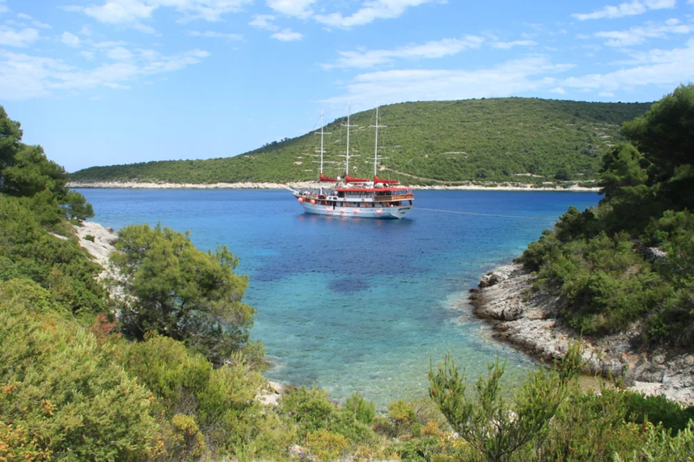 Pensión completa a bordo. Hoy navegaremos hasta la isla de Vis, una de las más apartadas y donde sus paisajes salvajes, las viñas ondulantes y las calas de aguas cristalinas evocan una belleza silenciosa y auténtica fuera de los núcleos más turísticos. Fondearemos en una de las idílicas calas de la costa sur y dispondremos de tiempo para bañarnos en sus aguas, un lugar ideal para desconectar. Después de almorzar navegaremos hasta el puerto de Komiza, villa de pescadores, donde veremos el monasterio de San Nicolás y la iglesia de Nuestra Señora de los Piratas. Dispondremos de tiempo libre para pasear por esta bonita población, antes de regresar al barco.