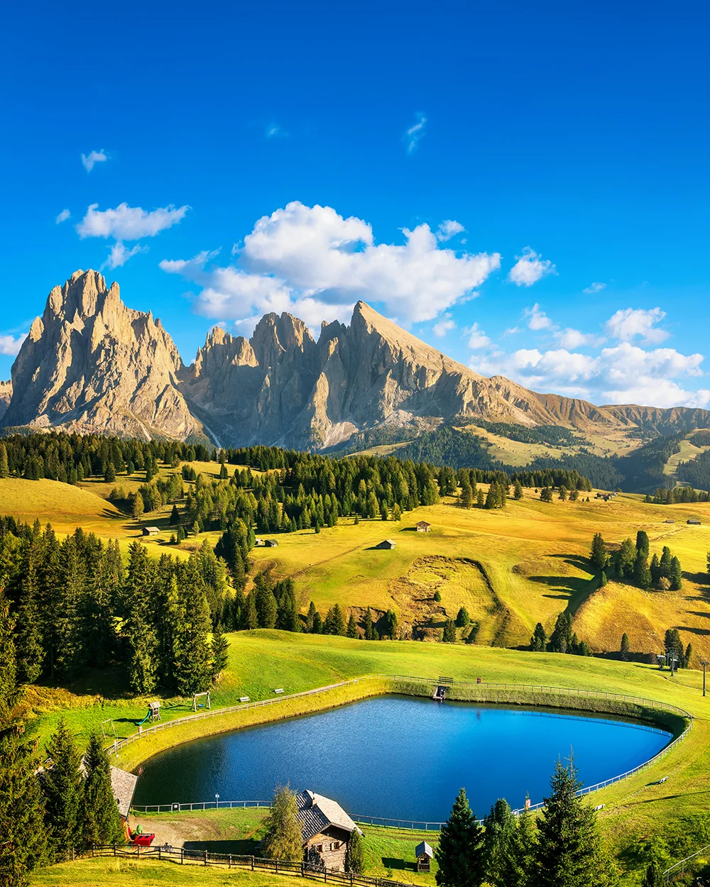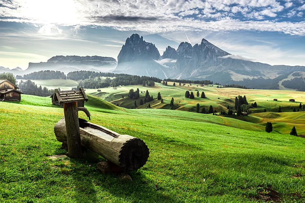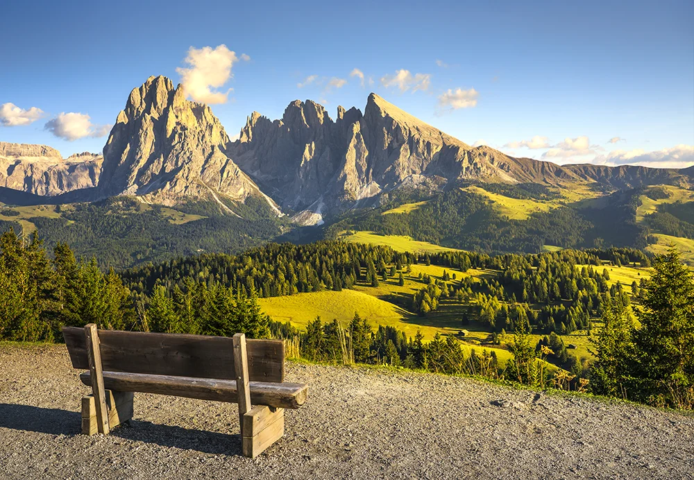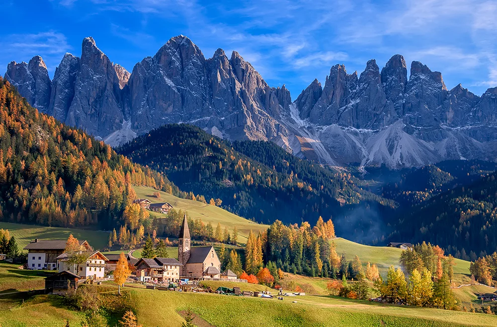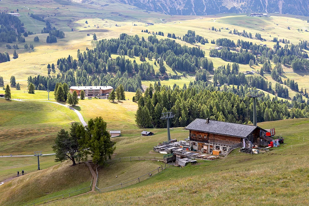 6º Día – San Virgilio di Marebbe – Alpes de Siusi – Ortisei – San Virgilio di Marebbe. Después de desayunar en el hotel recorreremos los espectaculares paisajes de Val Gardena hasta el pueblo de Ortisei, capital del valle, desde donde comenzaremos la excursión para conocer los Alpes de Siusi. El recorrido empieza subiendo con el telecabina, que ya nos ofrecerá vistas espectaculares del macizo del Sassolungo. Al llegar a Alpes de Siusi, se abre un inmenso prado alpino verde y luminoso, el más grande de Europa. Los caminos son amplios y accesibles, ideales para caminar con calma entre cabañas de madera y pastos. A cada paso nos aparecerán panorámicas impresionantes de las Dolomitas, especialmente del Sciliar. Almorzaremos y por la tarde regresaremos a Ortisei con el telecabina y haremos un paseo para conocer el pueblo, donde veremos la iglesia de St Ulrich y prestaremos atención al idioma ladí, la lengua de la mayoría de los habitantes de Ortisei. Cuando acabemos la visita regresaremos a nuestro hotel para cenar y descansar.