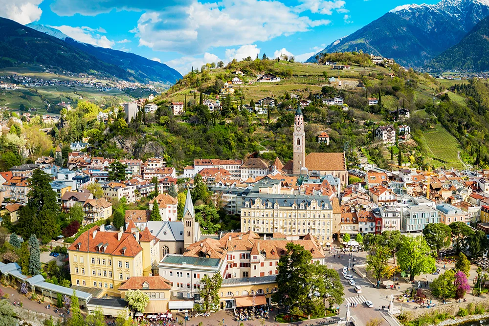 Encuentro en el aeropuerto de Barcelona con el guía de Eurovacances y salida del vuelo a Venecia. Después de aterrizar y recoger las maletas, comenzaremos la etapa en autocar en dirección a Bolzano, donde al llegar almorzaremos en un restaurante local. Por la tarde visitaremos Bolzano, la capital del Alto Adige. Típicamente centroeuropea y de marcado carácter austríaco, Bolzano es una ciudad relajada y acogedora organizada alrededor de la Piazza Walther. Durante nuestra visita recorreremos el centro histórico, veremos la iglesia de los Dominicos y el Duomo gótico y visitaremos el Museo Arqueológico donde destaca el hombre de hielo de Otzi. Cuando acabemos la visita continuaremos hasta la bonita población de Merano, donde cenamos y nos alojaremos.