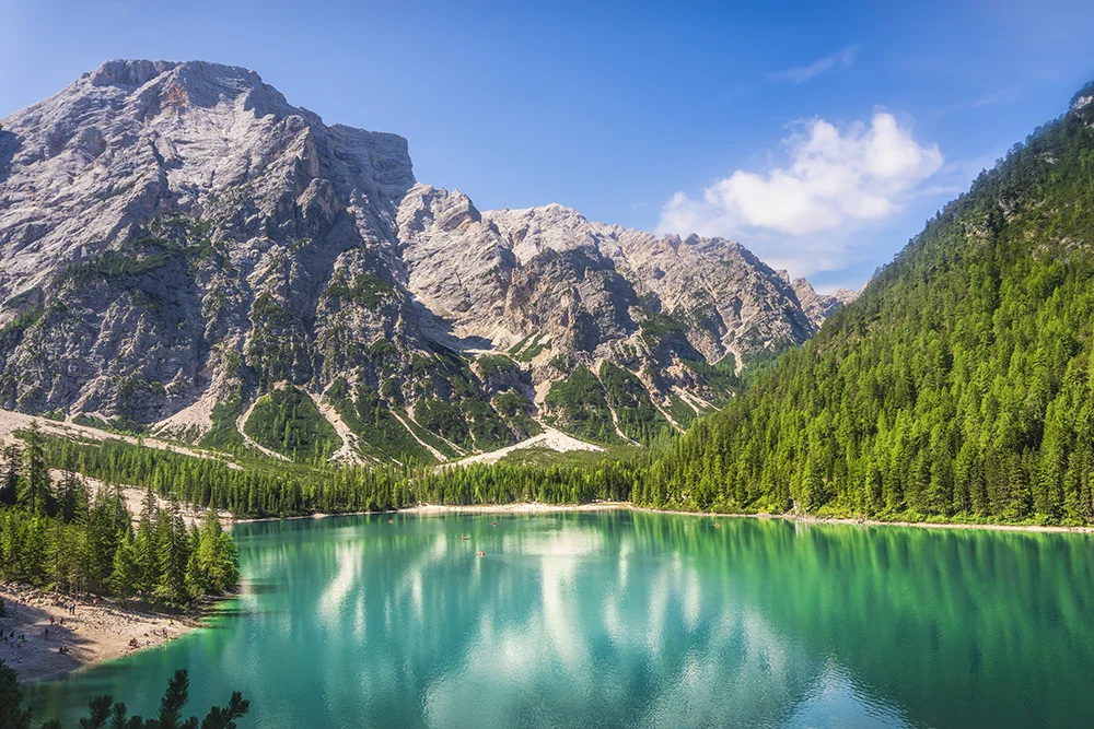 Desayuno en el hotel. Comenzaremos la mañana visitando Brunico, una bonita localidad medieval de trazado laberíntico, rodeada de murallas y dominada por un imponente castillo del siglo XIV. Haremos un paseo por el centro histórico, considerado uno de los más bonitos del Alto Adigio, y luego continuaremos la etapa hasta el lago di Braies. Situado en el Parque Natural de Fanes-Senes-Braies, este lago está rodeado por un paisaje de montañas espectacular. Almorzaremos y por la tarde dispondremos de un rato de tiempo libre en el lago Braies. Acabaremos la tarde haciendo un paseo por San Candido, una bonita población en el corazón de las Dolomitas con calles tranquilas y edificios históricos. Finalmente regresaremos a nuestro hotel para cenar y descansar.