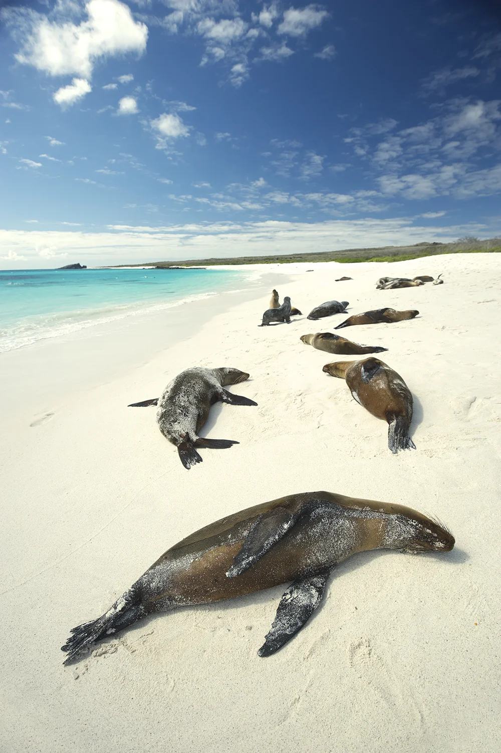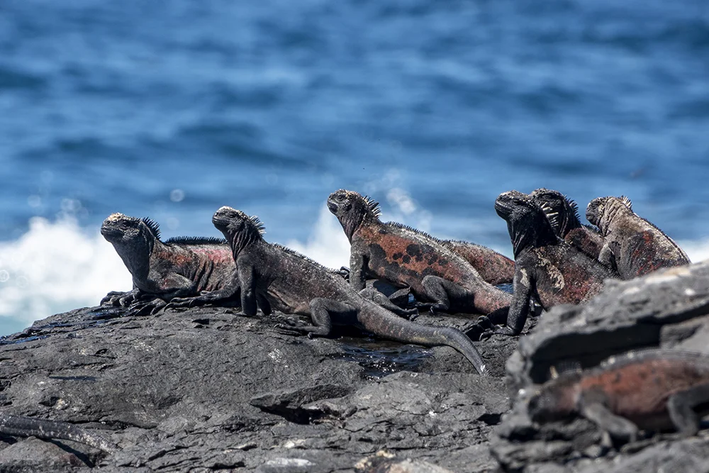 Esta mañana, después de desayunar desembarcaremos en Puerto Egas en la isla Santiago donde realizaremos una caminata para conocer iguanas, terrestres y marinas, y lobos marinos en medio de un espectacular paisaje volcánico y de formaciones de lava. Almorzaremos a bordo y por la tarde navegaremos hasta el islote Sombrero Chino; desembarcaremos para dar un paseo y conocer la fauna que lo habita. También disfrutaremos de tiempo para bañarnos en su preciosa playa de arena blanca de coral y hacer esnórquel para observar tiburones de punta blanca y pingüinos de Galápagos. Cena a bordo.