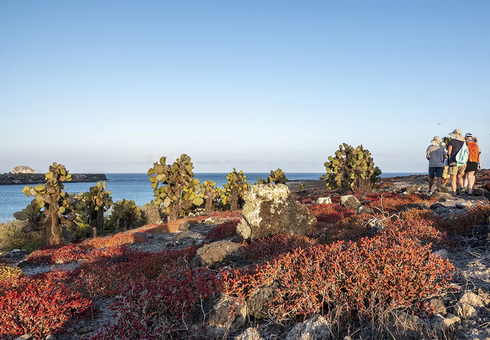 Esta mañana, después del desayuno llegaremos a isla Santa Fe. Desembarcaremos en una de sus playas de arena blanca y descubriremos una colonia de lobos marinos. También tendremos la oportunidad de ver iguanas terrestres de Santa Fe y bañarnos y hacer esnórquel desde la misma playa; con suerte, podremos ver tiburones, mantas gigantes y tortugas verdes. Almuerzo a bordo. Por la tarde desembarcaremos en el canal de aguas turquesas que separa Plaza Sur de Plaza Norte. Esta zona es conocida por su paisaje de cactus y por la gran cantidad de iguanas terrestres que habitan en ella. Cena a bordo.