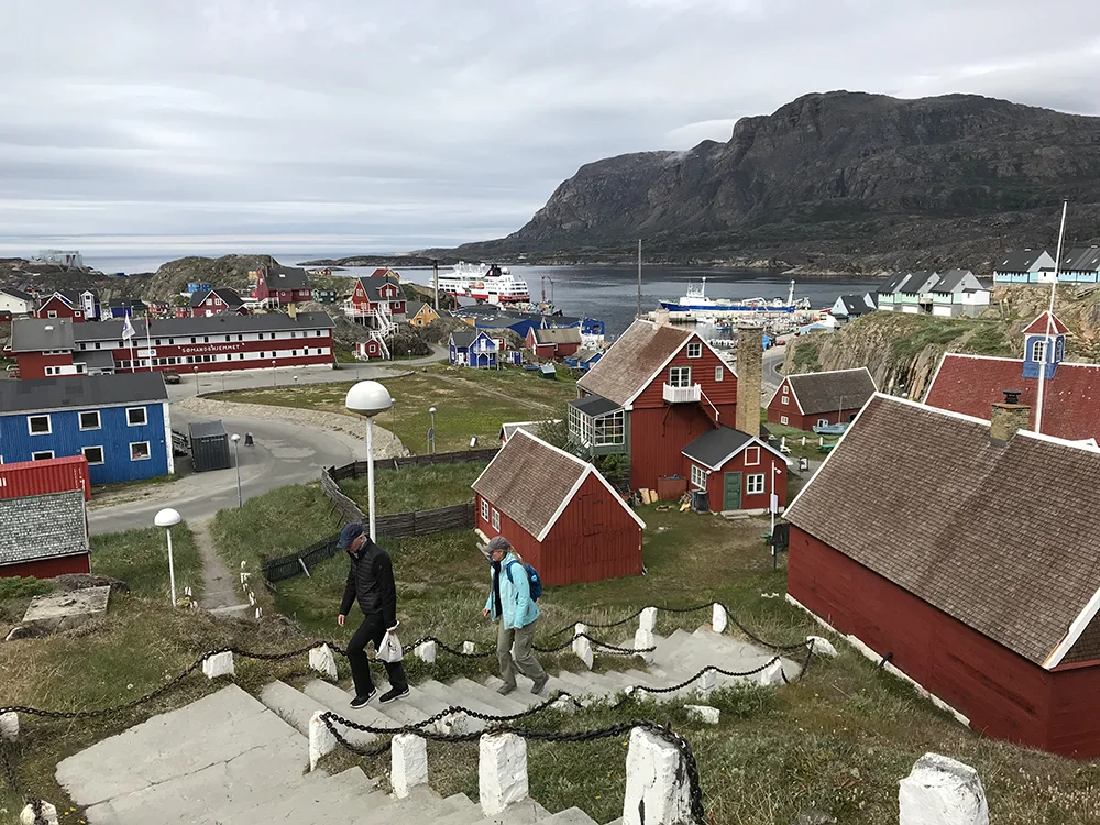 En nuestro recorrido hacia el sur, descubriremos comunidades donde las tradiciones ancestrales continúan muy vivas. Una parada destacada es Sisimiut, situada a solo 40 kilómetros al norte del Círculo Polar Ártico. Esta ciudad, vibrante y moderna, convive con vestigios arqueológicos de más de 4.000 años de antigüedad. Durante el viaje también tendremos la oportunidad de visitar otros lugares pintorescos y auténticos. Entre las posibles paradas están Qeqertarsuaq, el principal asentamiento de la bahía de Disko, e Itilleq, un pequeño y acogedor pueblo de pescadores y cazadores situado en una isla a sólo una milla al norte del Círculo Polar Ártico. Explorando los senderos helados, conversando con los amables habitantes locales, o navegando por aguas llenas de vida salvaje, estos últimos días a bordo nos ofrecerán el final ideal para una aventura inolvidable en tierras árticas.