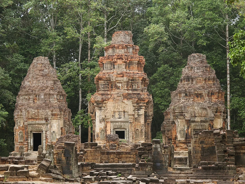 Desayunaremos en el hotel y nos trasladaremos al aeropuerto para coger los vuelos que nos deben llevar a Siem Reap, Camboya, la población más cercana a la zona arqueológica de Angkor (UNESCO). Realizados los trámites de entrada a Camboya iremos a instalarnos a un excelente hotel donde pasaremos las tres próximas noches. Almuerzo en el hotel. Por la tarde visitaremos el conjunto de Roluos, formado por los templos de Preah Ko, Bakong y Lolei. Este conjunto de templos, se encuentran en las afueras de Siem Reap, en el antiguo núcleo de Hariharalaya, una de las primeras capitales khmer del siglo IX. Los templos muestran el origen del arte y la arquitectura de Angkor, con elegantes relieves y una atmósfera que evoca los inicios de la grandeza khmer. Al terminar la visita cenaremos y descansaremos en el hotel.