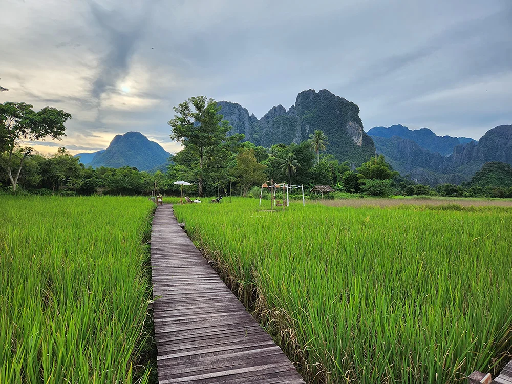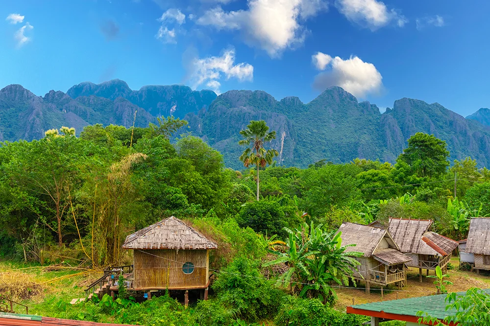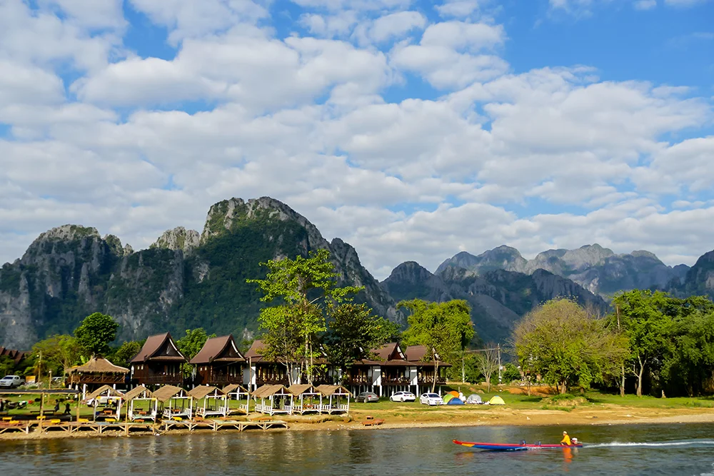 Desayunaremos en el hotel y seguiremos con la visita de la capital de Laos, situada en la ribera del Mekong. A lo largo de la visita prestaremos atención a los suntuosos edificios de las embajadas y veremos la llamada Puerta de la Victoria, construida en 1958. También visitaremos lo que fue el templo de la monarquía laosiana, el Hor Prakeo, construido a mediados del siglo XVI por el rey Setthathirath. Convertido en museo desde el año 1970, el templo contiene numerosas estatuas de Buda. El edificio principal es el que guardaba el Buda Maragda, que ahora se encuentra en Bangkok. Nuestro itinerario también nos llevará al Monasterio de Wat Sisaket y al espectacular estupa sagrada de That Luang, construida a mediados del siglo XVI y convertida en símbolo del budismo. Almorzaremos en un restaurante local y por la tarde saldremos por carretera bordeando el bonito lago de Nam Ngum hasta la población de Vang Vieng. Durante el camino nos detendremos a visitar un poblado de la etnia Hmong y pasearemos por uno de los típicos mercados locales de pescado. Cuando lleguemos a Vang Vieng nos alojaremos en el hotel y cenaremos.