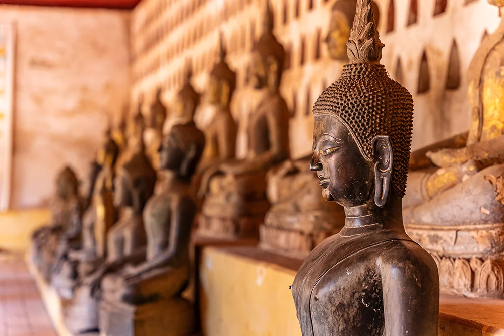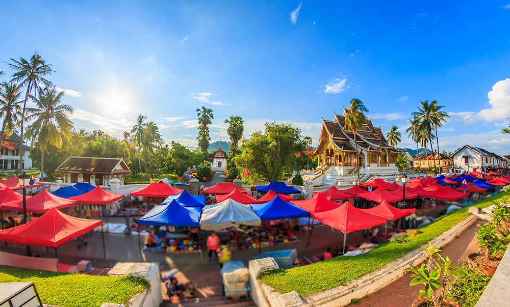 Al mediodía aterrizaremos en Vientiane, la capital del país, y una vez recogido el equipaje nos dirigiremos al hotel, donde almorzaremos. Esta tarde haremos una primera visita tranquila de la ciudad conociendo el museo textil de Laos, donde nos enseñarán cómo trabajan la seda en el país. Cuando anochezca iremos a conocer los animados mercados nocturnos que se celebran en varias calles de la ciudad y cenaremos a un restaurante local antes de regresar al hotel para descansar.