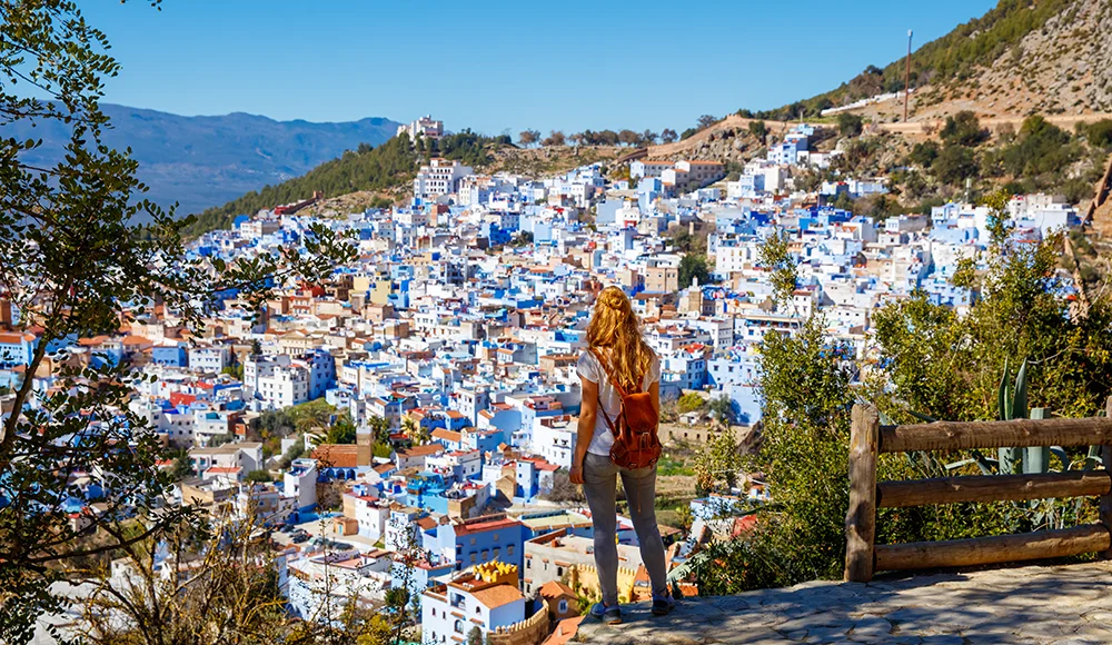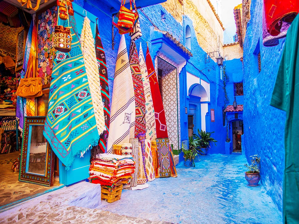 Presentación en el aeropuerto donde encontraremos el guía de Eurovacances, que nos ayudará con los trámites de facturación y nos acompañará durante todo el viaje. Salida del vuelo a Tánger. Al aterrizar saldremos por carretera hacia la población de Chauen, considerada una de las poblaciones más bonitas del país, fuera de los circuitos turísticos convencionales, donde destacan sus calles empedradas y las ventanas de tonalidades azules de sus casas. Almuerzo en un restaurante local. Esta tarde pasearemos por Chauen, donde disfrutaremos de sus pequeñas plazas, sus miradores hacia el Rif, de sus calles empedradas y nos impregnaremos del ambiente que rodea la vida de la población. Al terminar la visita nos instalaremos en un confortable riad para cenar y descansar.