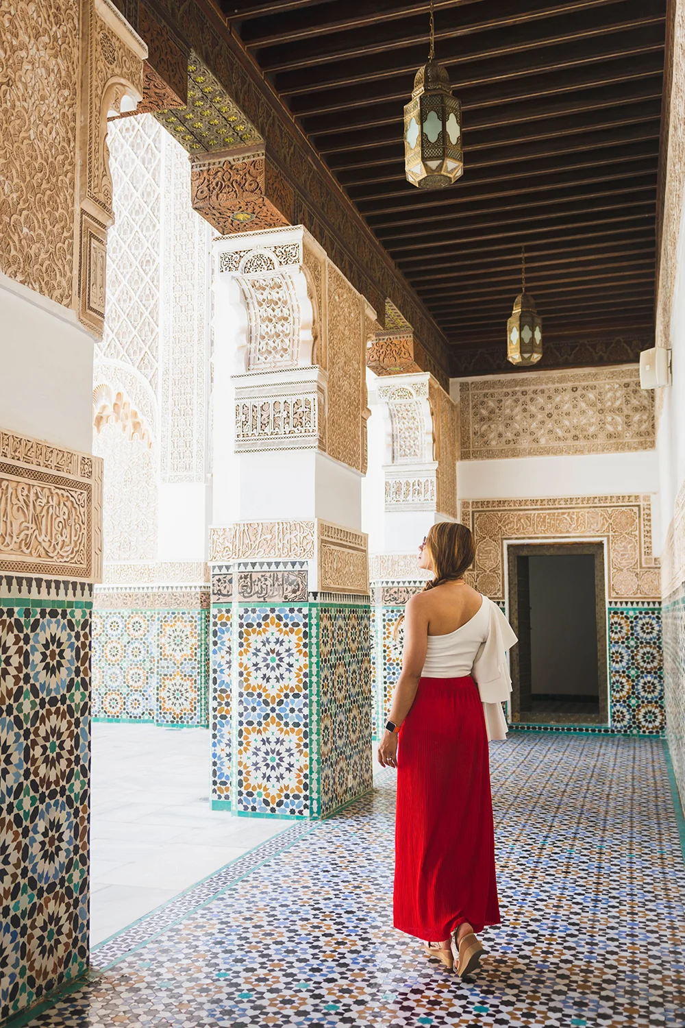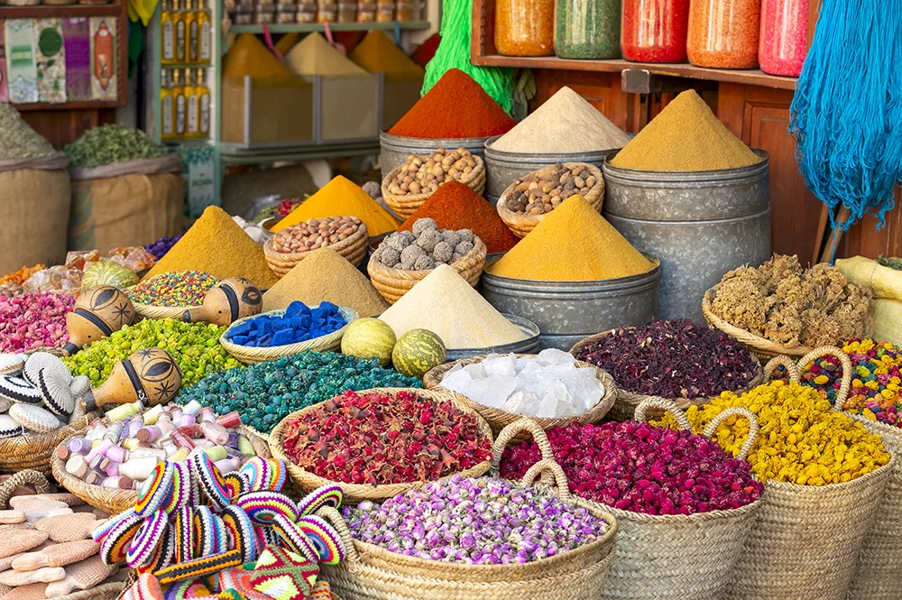 Después de desayunar en el hotel empezaremos a conocer la fascinante ciudad de Marrakech (UNESCO) conocida con el apodo de la Perla Roja del Sur. Durante el recorrido nos llegaremos a los magníficos jardines de La Menara, situados en uno de los barrios más lujosos de la ciudad. Estos jardines están constituidos por cientos de hectáreas de olivos, con un lago central del siglo XII presidido por un pequeño pabellón de época almohade. El conjunto, con las montañas del Gran Atlas como telón de fondo, forma una de las imágenes más conocidas de Marrakech. También veremos el exterior de la famosa Mezquita de Koutoubia. considerada una de las mejores creaciones del arte hispano-musulmán, de las más grandes y más armoniosas de occidente. A continuación conoceremos el palacio principesco de La Bahía, de finales del siglo XIX, y la espectacular madraza de Ben Youssef, la más importante del Magreb. Almuerzo en un restaurante local. Por la tarde visitaremos los mercados de la ciudad, donde el ambiente medieval se mezcla con el exotismo de oriente. En este laberinto de callejuelas estrechas, descubriremos la exuberancia de una artesanía muy diversa, síntesis de las múltiples caravanas que durante siglos han convergido en la ciudad. Terminaremos el día paseando por la plaza Jemaa el Fna, situada en el corazón de la Medina, donde descubriremos toda la magia de oriente, veremos actividades que creíamos desaparecidas y nos sumergiremos de lleno en la historia para entrar a formar parte del mundo medieval. Por la noche saldremos a cenar a uno de los restaurantes más reconocidos de la ciudad.