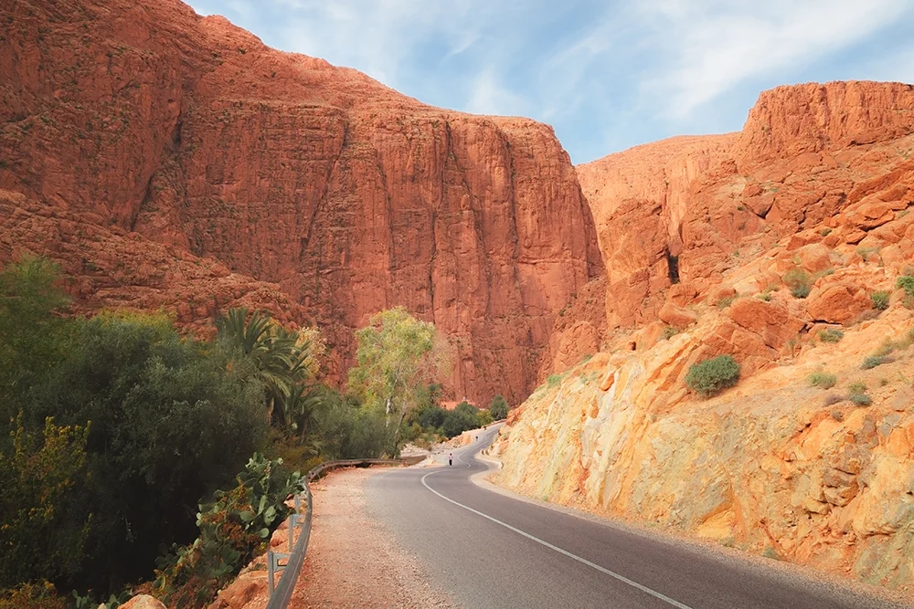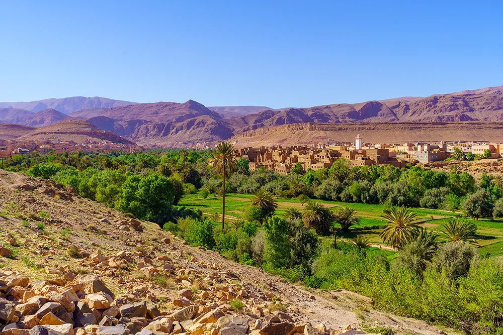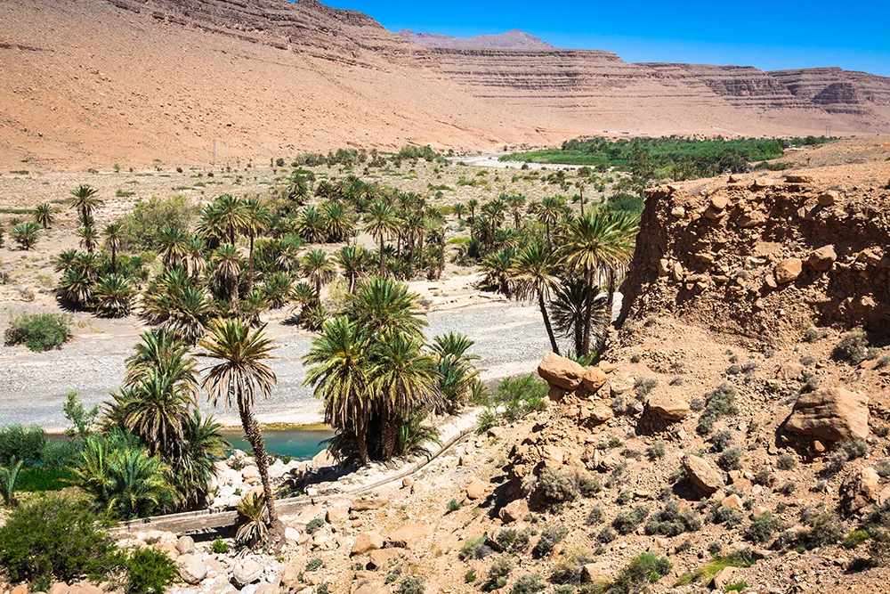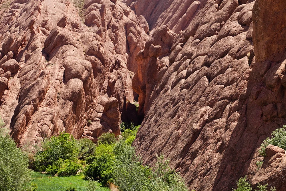 Después del desayuno iniciaremos la etapa que nos llevará hasta la ciudad de Boulmane, situada a los pies del Gran Atlas. Durante el trayecto, volveremos a atravesar el Tafilalt, veremos las kasbahs que defienden el extremo oeste del oasis y después continuaremos por un terreno más seco hasta llegar a Tinerhir. Nuestro objetivo y próxima visita son las espectaculares gargantas del Todra. La carretera nos llevará a través de un extenso palmeral hasta la parte más estrecha y espectacular del valle, donde las aguas del río descienden encajonadas entre paredes verticales de más de 300 metros de altura. En algunos puntos, las gargantas son tan estrechas que las paredes apenas están separadas una veintena de metros. Almuerzo en ruta en un restaurante local. Por la tarde continuaremos la etapa hacia Boulmane. Más adelante, la carretera atravesará el valle del Dades hasta el oasis de Skoura. Aquí, en medio de una exuberancia sorprendente, se cultivan algunas de las mejores rosas de Marruecos. Finalmente, recorreremos los últimos kilómetros que nos separan de Boulmane, donde cenaremos y nos alojaremos.