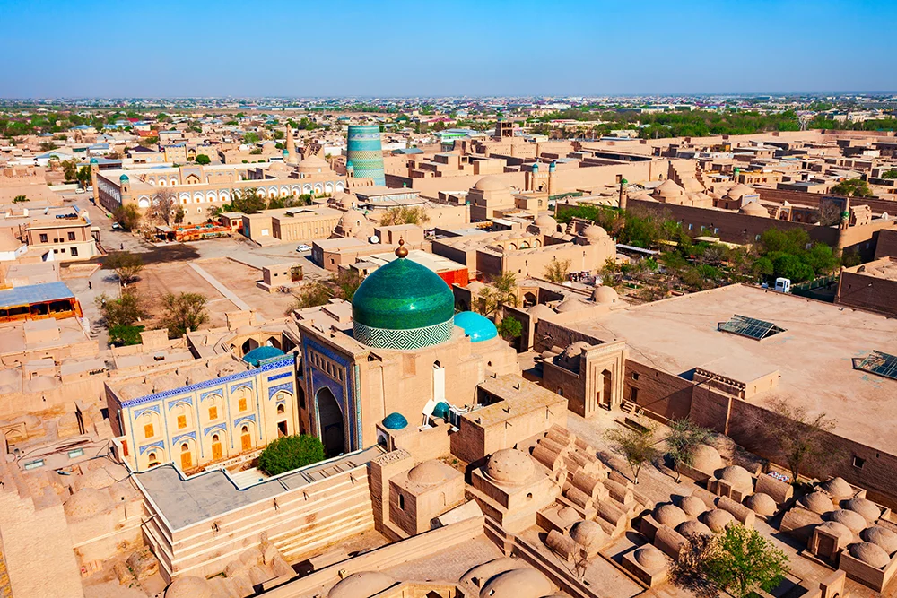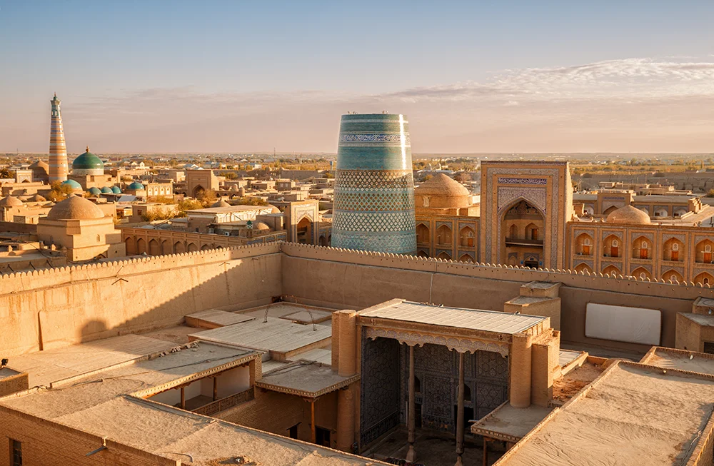 Desayunaremos en el hotel y empezaremos la etapa a través del desierto de Kyzylkum hacia la ciudad de Khiva. Este desierto, cuyo nombre significa arenas rojas en uzbeko, se extiende casi 300.000 kilómetros cuadrados entre las cuencas de los ríos Amu Darya y Syr Darya. Situado a una altura media de 300 metros sobre el nivel del mar, Kyzylkum está afectado por la amplitud térmica típica de los desiertos continentales, con mínimas invernales de hasta -15ºC y máximas estivales por encima de +40ºC. Almuerzo en ruta en un sencillo restaurante local. Por la tarde llegaremos a la histórica ciudad de Khiva (UNESCO). Cena y alojamiento.