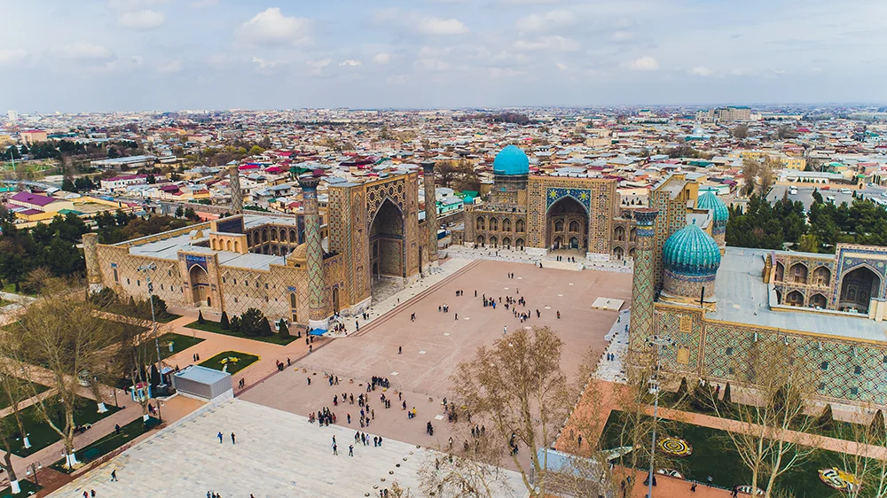 Esta mañana saldremos temprano hacia la estación de Taskent para tomar el tren rápido hasta Samarkanda (UNESCO), la ciudad más literaria e inspiradora de la Ruta de la Seda. Fundada en el siglo V a.C., Samarkanda un siglo más tarde era ya una gran ciudad cosmopolita. Cruce de caminos durante siglos, las caravanas de China, Persia e India, forjaron la leyenda e hicieron de sus mercados y palacios el mito más romántico de la Ruta de la Seda. Al llegar a Samarkanda almorzaremos. Por la tarde conoceremos el Mausoleo de Guri-Amir, donde está enterrada la familia de Tamerlan y visitaremos el observatorio astronómico de Ulug Bek. Para terminar el día conoceremos el taller artesanal de papel de seda, que se encuentra en un hermoso lugar en las afueras de Samarkanda. Al finalizar la visita nos alojaremos en el hotel y cenaremos.