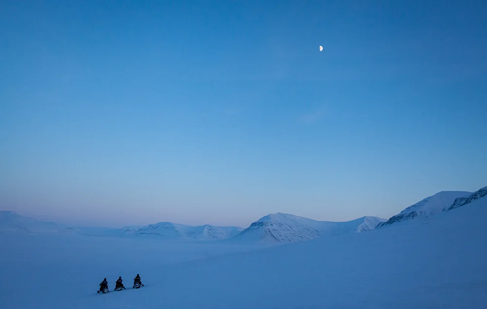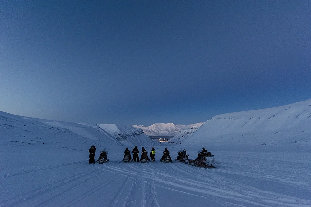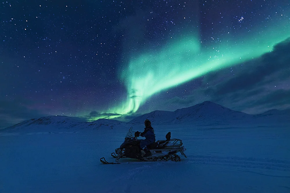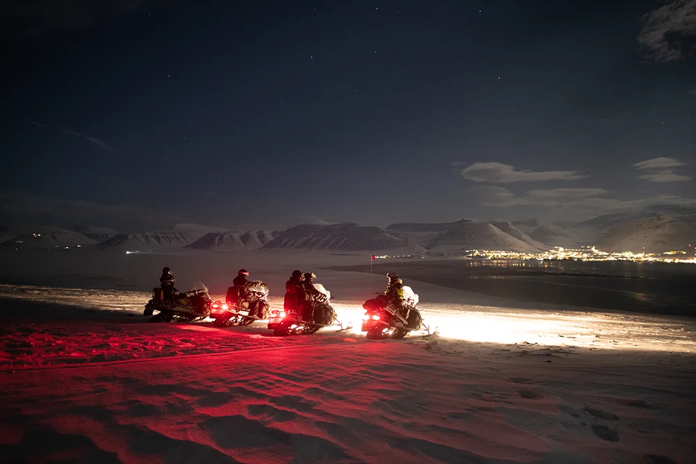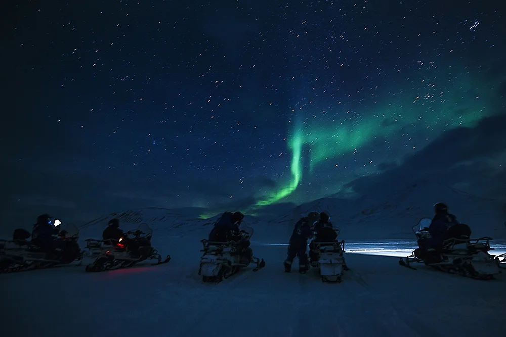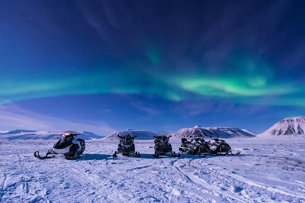 Después de desayunar haremos un viaje en el tiempo hasta la llamada Mina Número 3 para descubrir el pasado minero de Svalbard. Como hacían los propios mineros, nos equiparemos con casco y frontales y nos adentraremos en las entrañas de la montaña. Durante el recorrido, el guía nos explicará cómo se trabajaba y vivía tiempo atrás, cuando el carbón era el producto más importante que se explotaba en el archipiélago. Regresaremos al Funken Lodge para almorzar y por la tarde nos equiparemos con ropa térmica especial y comenzaremos una espectacular excursión con motos de nieve por los magníficos paisajes nevados de la isla Spitsbergen (dos personas por moto de nieve, carné de conducir imprescindible). Durante el recorrido atravesaremos el valle de Helvetiadalenfins hasta Elveneset, desde donde se disfruta de las mejores vistas del Sassenfjorden. Veremos una reconfortante bebida caliente ofrecida por nuestros guías y luego iniciaremos el regreso a Longyearbyen. Por la noche celebraremos una cena muy especial en la Willems Cabin, un refugio de lujo situado en plena naturaleza donde degustar una exquisita cena gourmet combinando los sabores del ártico con vinos cuidadosamente seleccionados.