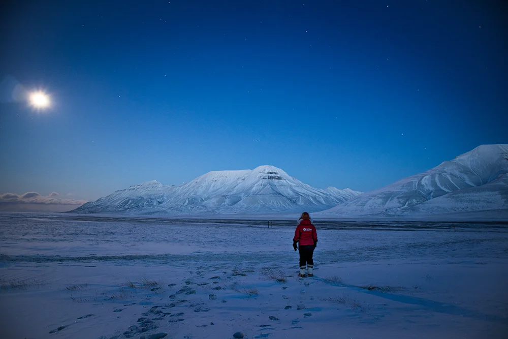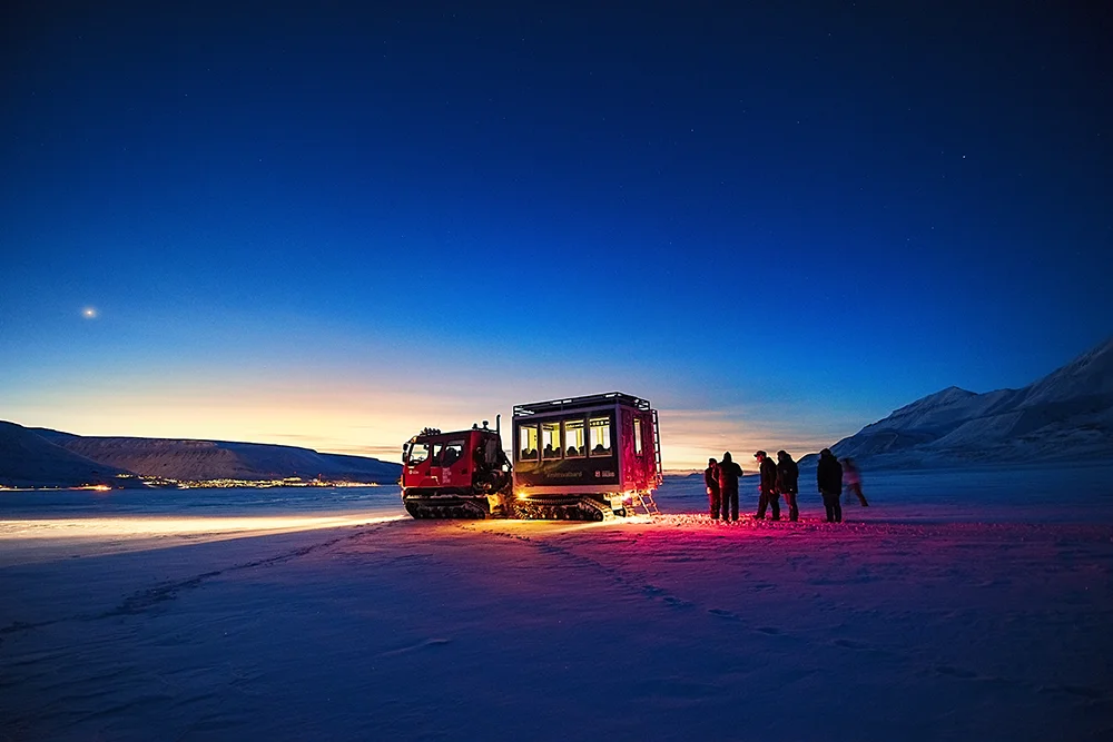 Después de desayunar cogeremos una retrac especialmente diseñada para viajar por terrenos nevados y subiremos hasta el glaciar Longyear, desde donde se disfruta de magníficas vistas de la ciudad. Una vez arriba, nos equiparemos con casco y crampones y exploraremos las espectaculares cuevas de hielo que se forman dentro del glaciar. Regresaremos al Funken Lodge para almorzar y por la tarde haremos una caminata por las colinas que se encuentran alrededor de Longyearbyen. una experiencia sobrecogedora en un paisaje árido y glacial. El horizonte se extiende infinito, cubierto de nieve y rocas esparcidas bajo un cielo vasto y frío. El silencio es casi absoluto, roto sólo por el crujido de las botas sobre el hielo. La luz ártica, tenue y azulada, da a todo el paisaje un aire misterioso e inolvidable. Y si con suerte aparecen las auroras boreales, se convertirá en una caminata mágica. Por la noche celebraremos una cena exquisita con maridaje de vinos en el restaurante Nansen, bautizado con el nombre de uno de los grandes exploradores polares noruegos.