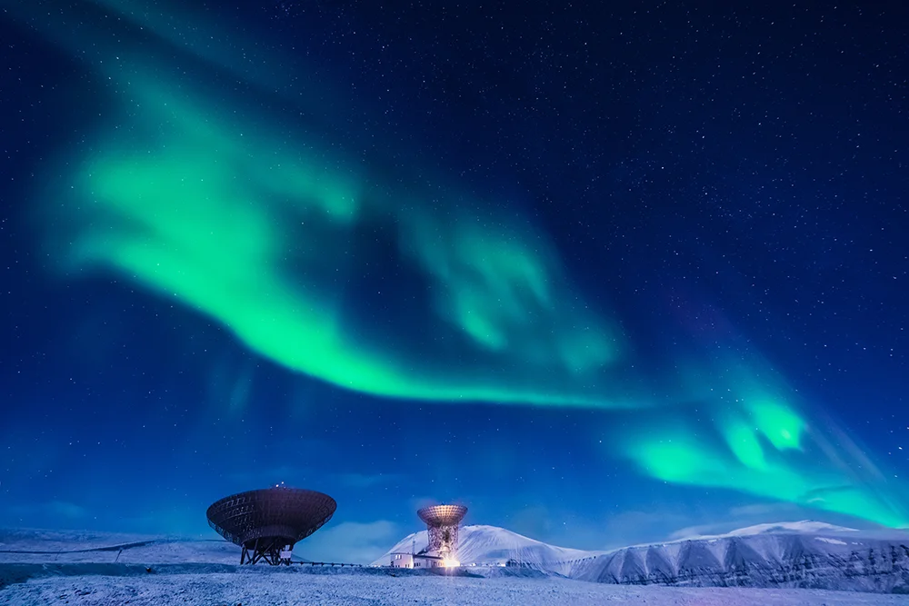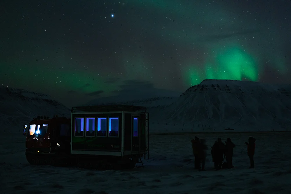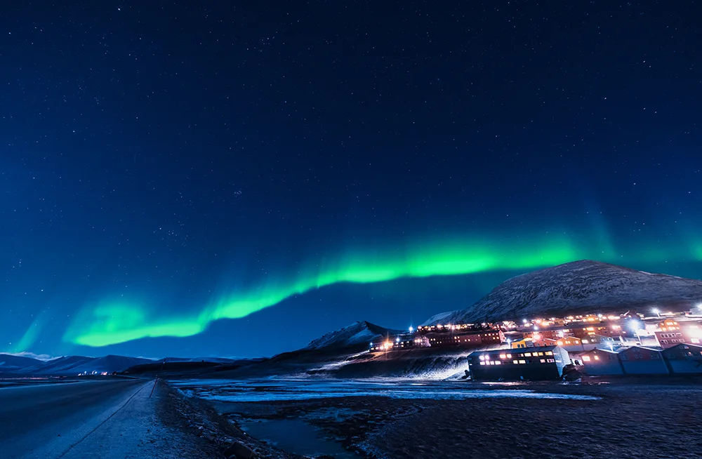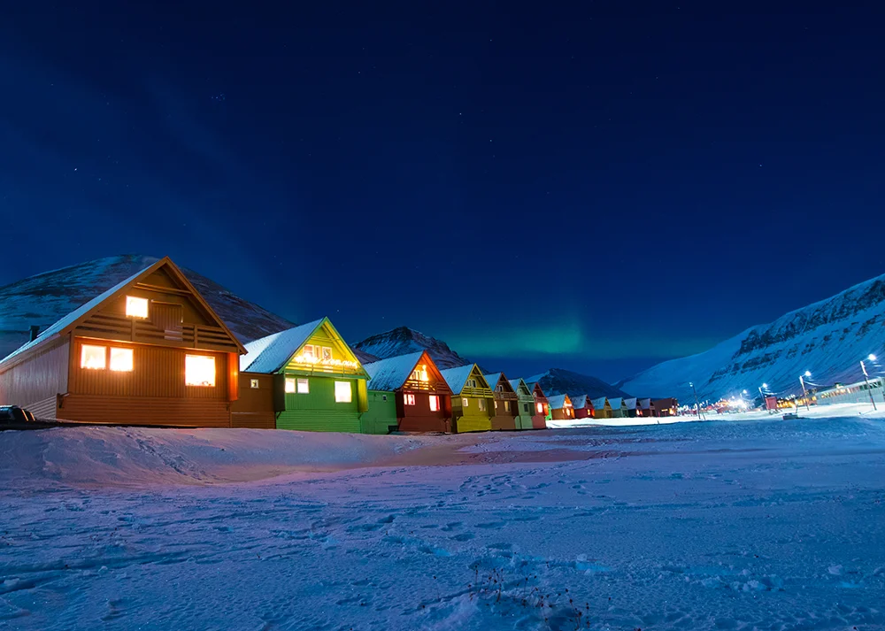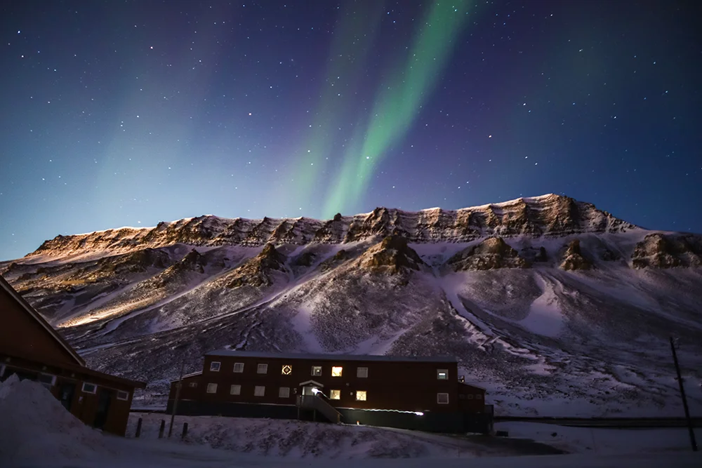 Esta mañana nos trasladaremos al aeropuerto para coger el vuelo a Longyearbyen, que con poco menos de 2.300 habitantes es el asentamiento más importante del archipiélago de Svalbard. Después de aterrizar iremos a instalarnos en el magnífico Funken Lodge, un hotel boutique de ambiente exquisito situado al sur de la ciudad. Descubriremos la bodega más septentrional del mundo catando una selección de champanes escogida por los mejores sumillers del ártico y luego cenaremos en el restaurante Funktionærmessen, donde degustaremos un menú gastronómico elaborado con productos árticos de máxima calidad y con maridaje de vinos. Acabaremos el día disfrutando de una primera oportunidad para ver auroras boreales.