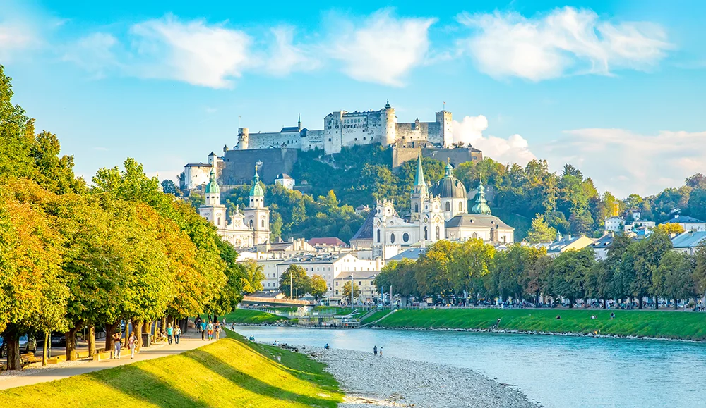Esta mañana, después de desayunar en el hotel, nos dirigiremos a Salzburgo, la ciudad de la sal, capital de la provincia que lleva el mismo nombre. Llegaremos a la ciudad natal de Mozart, compositor que dominó todas las formas de expresión musical, atravesada por el río Salzach y construida al pie de la fortaleza de Hohensalzburg, residencia de los príncipes-arzobispos. Iglesias, campanarios, majestuosas plazas y palacios nos recuerdan su período esplendoroso durante el Renacimiento, cuando el príncipe-arzobispo Wolf Dietrich Von Raitenau la convirtió en la Roma del Norte. Visitaremos la magnífica Catedral barroca, la plaza de la Catedral y la Iglesia de San Pedro. Proseguiremos el recorrido y veremos el Palacio de los Festivales, la Iglesia de la Universidad – de estilo barroco – y la casa de Mozart. Subiremos en funicular a la Fortaleza de Hohensalzburg, construida sobre un bloque dolomítico a 120m de altura sobre la ciudad. Desde el siglo XI hasta el XV esta fortaleza fue la residencia de los príncipes-arzobispos. Desde la plataforma exterior podremos contemplar una espléndida panorámica de la ciudad y su entorno. Iremos a la ribera oriental del río Salzach donde veremos el Teatro de conciertos, el Teatro de títeres y los Jardines y Palacio de Mirabell, donde podremos contemplar una magnífica panorámica de la ciudad y la Fortaleza de Salzburgo.